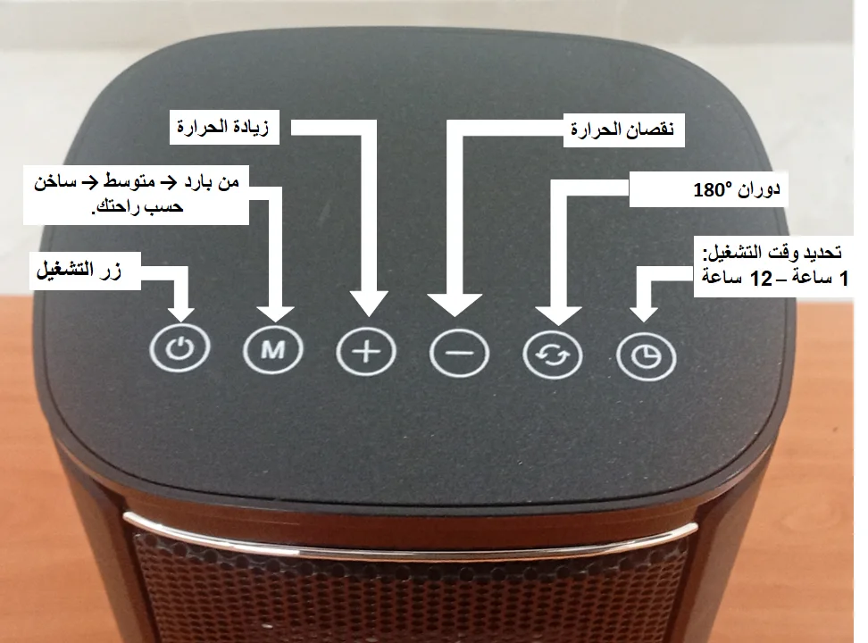 ⏰ مؤقّت 1–12 ساعة 🌡️ 3 وضعيات: بارد / متوسط / ساخن ➕➖ زيادة ونقصان الحرارة 🔄 دوران 180° لتوزيع متساوي 🛡️ أمان ذكي: كيطفى أوتوماتيكياً إلا طاح